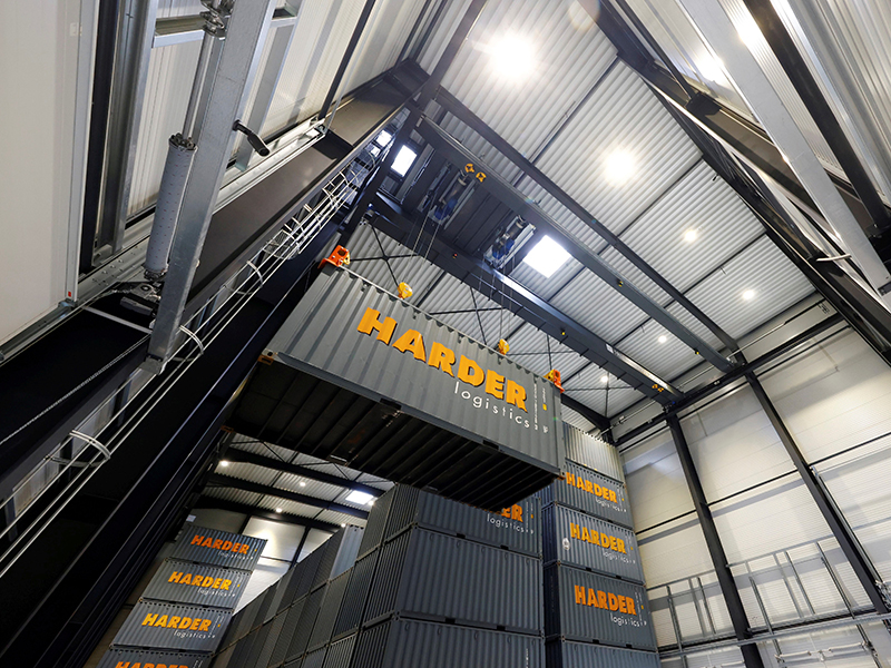 Doch nicht nur das Thema Sicherheit spielte beim Bau eine Rolle. Nachhaltigkeit und Umweltverträglichkeit waren ebenso wichtige Punkte. Johannes Danieli, Junior Projektleiter bei Harder Logistics, freut sich mit dem „Container-Hochhaus“ eine nachhaltige Lösung für den Kapazitätsausbau seines Unternehmens gefunden zu haben. Mit dieser Bauweise lässt sich der „Flächenfraß“ schließlich deutlich reduzieren. Den geringeren Flächenverbrauch quantifiziert er wie folgt: „Diese neue Hightech-Immobilie kann bis zu 250 Container auf einer Fläche von 950 Quadratmeter fassen. Damit werden für die Boxen gerade einmal 10 Prozent der bisherigen Fläche verbraucht. Bei herkömmlicher Lagerung würden 9.000 Quadratmeter an Platz benötigt.